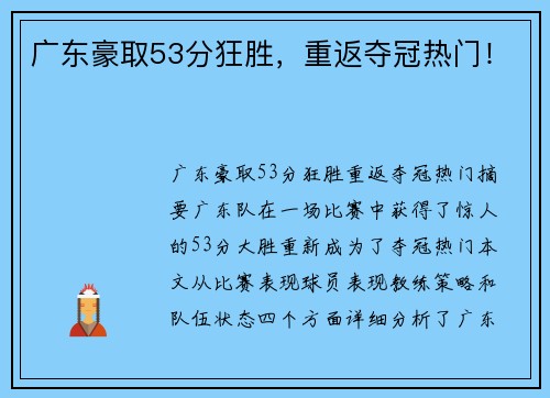 广东豪取53分狂胜,重返夺冠热门!